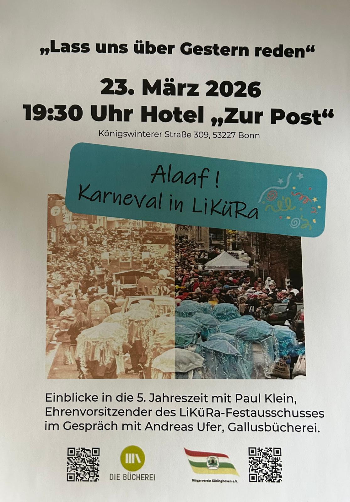 Am 06.10.2025 um 19 Uhr findet im Pfarrzentrum in der Gallusstraße die nächste Veranstaltung der Reihe "Lass uns über gestern reden" statt.